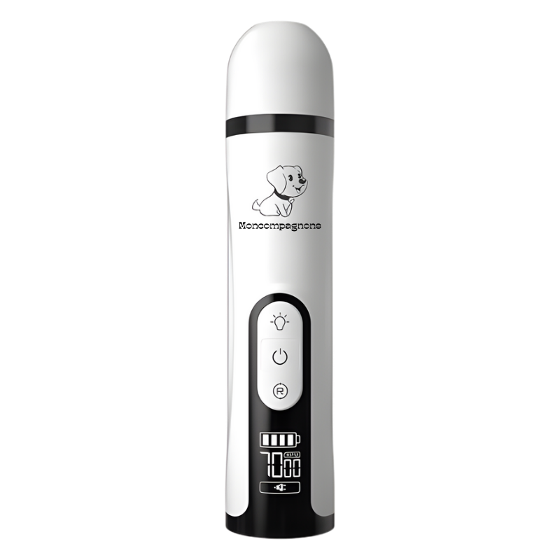 Notre broyeur est équipé d'une batterie longue durée et se recharge via un câble USB universel (inclus). Une charge complète prend généralement environ 2-3 heures et offre une autonomie de plusieurs heures d'utilisation continue, ce qui est amplement suffisant pour de nombreuses séances de toilettage. L'écran LCD vous indique le niveau de batterie en temps réel.
